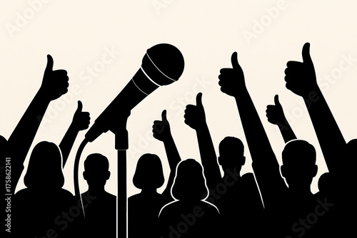 Microphone with Audience Thumbs Up