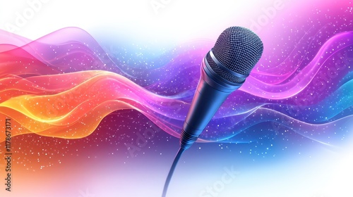 Microphone with colorful abstract wave background.