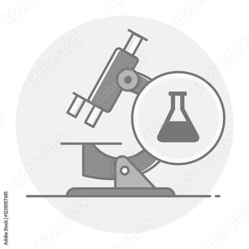Microscope with Chemical Flask Icon, Chemistry Research and Laboratory Experiment Symbol