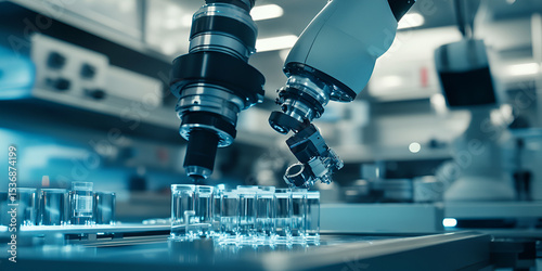 Microscope with Test Tubes in Scientific Lab | Close-Up of Laboratory Equipment with Microscope | Scientific Research with Microscope and Test Tubes in Laboratory