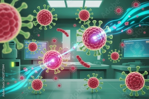Microscopic Invaders: A conceptual, detailed, illustration visualizes the menacing presence of microscopic organisms.