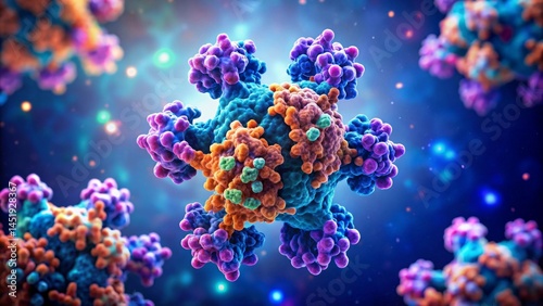 Microscopic View of a Complex Molecular Structure with Vibrant Color Palette and Intricate Details Revealing the Beauty of Nanoscale Biology
