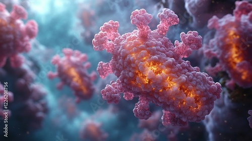 Microscopic View Of A Coronavirus Cluster Showing Detail