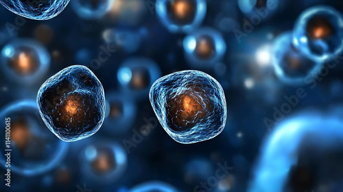Microscopic view of cells with glowing nuclei, showcasing biological activity and structure