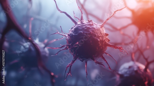 Microscopic View of Decaying Cell Next to Healthy Ones, Illustrating Life and Death in Cellular Biology.
