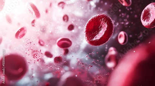Microscopic View of Red Blood Cells in Plasma Fluid