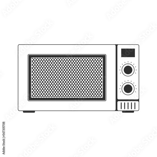 Microwave icon in flat style. Front view. Kitchen equipment. Device from warming up the food. Steel microwave isolated on white background. Vector illustration EPS 10.