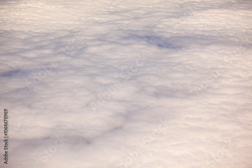 Mid Air view of cloud cover from an aircraft over the Pacific Ocean.