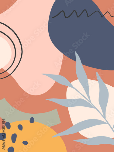 Mid century modern abstract vector illustration with organic shapes and plants.Minimalistic art print.Trendy artistic design perfect for banners templates;social media,invitations;branding,covers