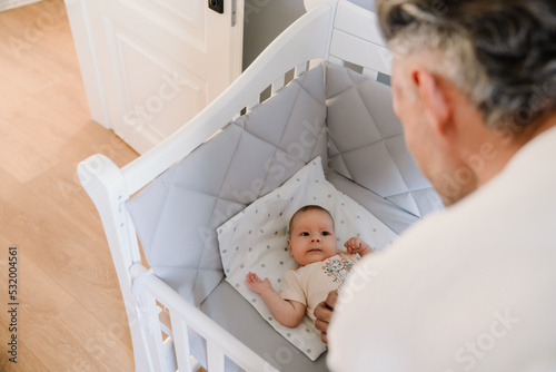 Mid white father spending time with his baby at home