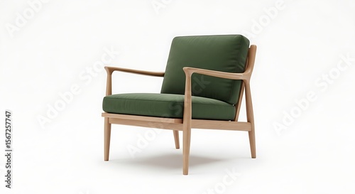 Mid-Century Modern Armchair Elegant Green Upholstery and Light Oak Frame