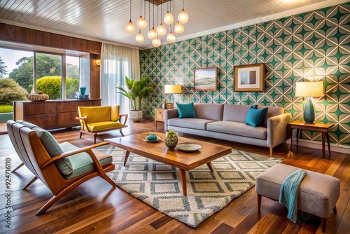 Mid-Century Modern Charm: Geometric patterns, clean lines, retro colors, vintage elegance.