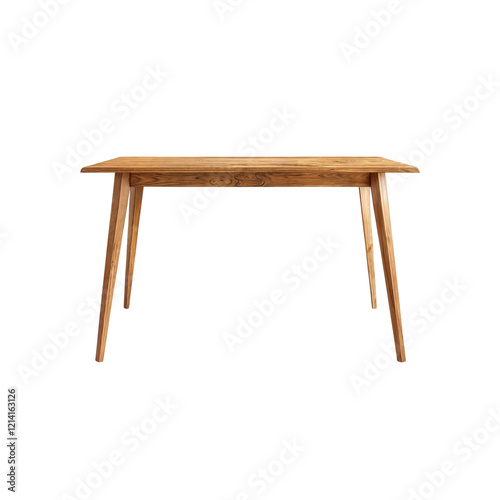 Mid-Century Modern Dining Table: A sleek and stylish mid-century modern dining table made of natural wood with a warm honey finish, featuring four tapered legs and a rectangular top.