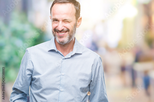 Middle age hoary senior business man over isolated background winking looking at the camera with sexy expression, cheerful and happy face.