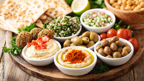 Middle Eastern Meze Platter with Hummus, Falafel, Tabbouleh and Olives