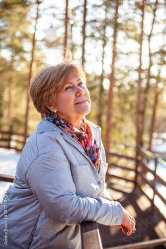 Middle-aged woman on walk in spring park