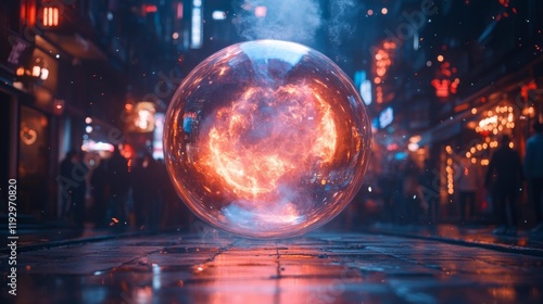 Midnight Magic Sphere in Vibrant Cityscape. Generative AI