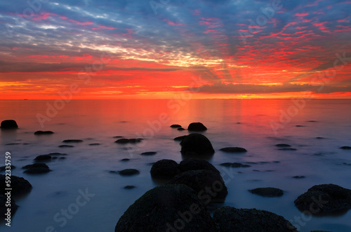 Midsummer sunset over The Wash, from Hunstanton beach, North Norfolk