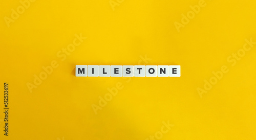 Milestone Word and Banner. Letter Tiles on Yellow Background. Minimal Aesthetics.