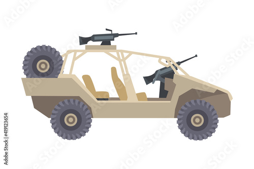 Military Car as Transportation Vehicle Used in Army for Carrying Armed Forces Vector Illustration