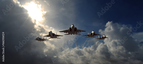 Military Fighter Jets in Formation Flight