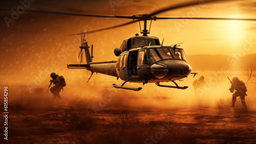 military helicopter transports soldiers.