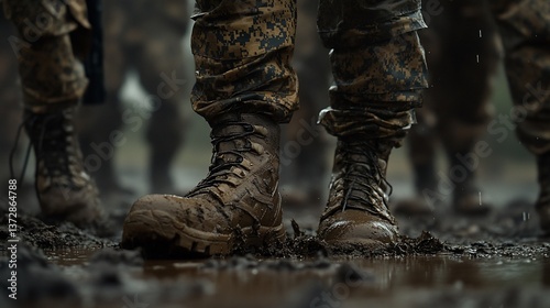 Military March Through Muddy Terrain: Determination and Perseverance Showcased