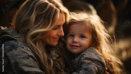 military, service woman, hugs, child, smilecore, reverent, tranquil, embracing, love, heartfelt, tender, family, joy, connection, serene, grateful, emotional, sacred, comfort, proud, honor, sentimenta