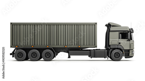 Military-style cargo truck with container side view illustration