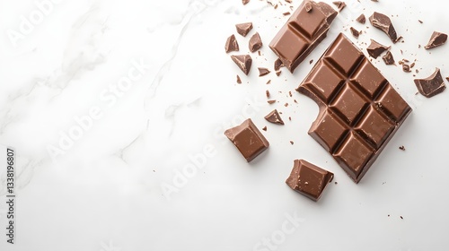 Milk Chocolate Bar Broken Into Pieces On Marble