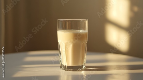 Milk in a Clear Glass with a White Background and a Soft Shadow