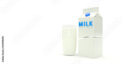 Milk pack with glass of milk on white background. 3d illustration.