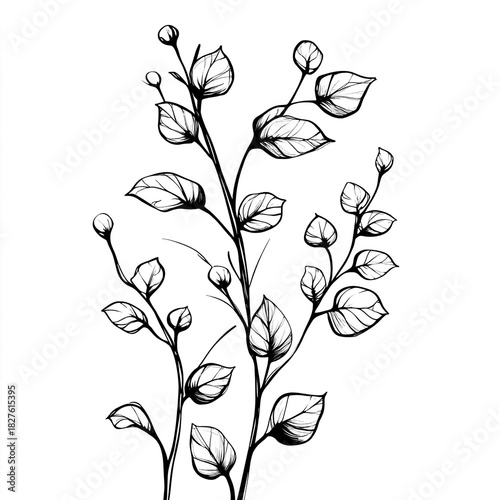 Milk Thistle Roots Top View 2D Doodle Illustration Black White Isolated Background