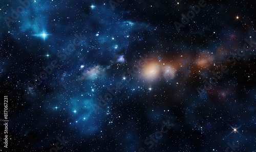 Milky Way Galaxy in a Blue Space Filled with Stars, Gas, and Dust. Night sky background