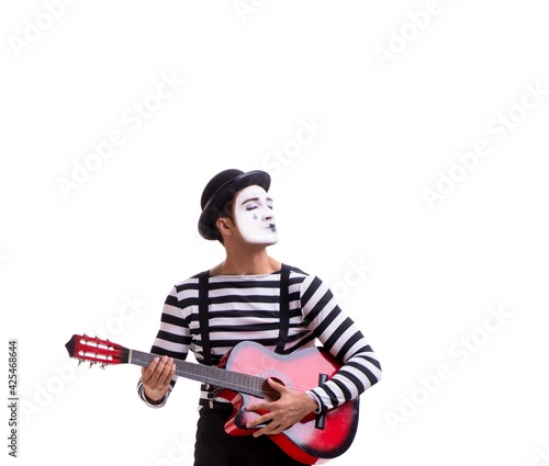 Mime playing guitar isolated on white