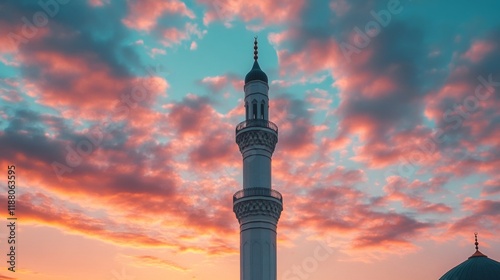 Minaret Silhouette Against A Vibrant Sunset Sky