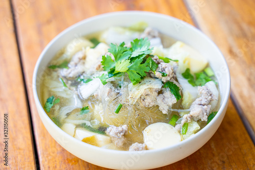 minced pork and egg tofu soup