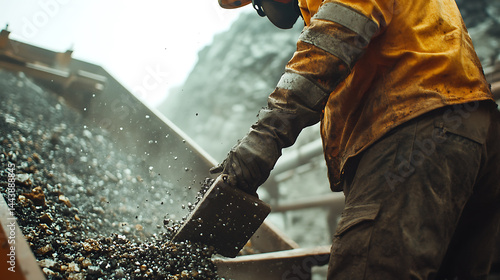 Miner Working with Ore at a Mining Site