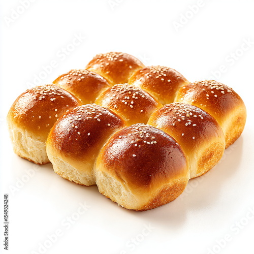 mini brioche buns arranged side by side, studio lighting, isolated on white background