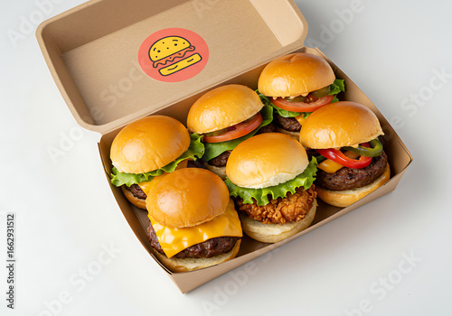 Mini Burger Assortment A Box of Culinary Delights with Various Toppings