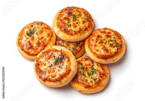 Mini Cheese Pizzas with Tomato Sauce on White Background