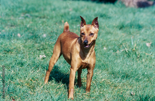 Mini Pinscher standing in grass