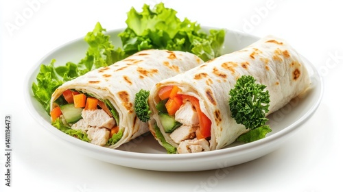 Mini roll plate, chicken, veggies, isolated with white background
