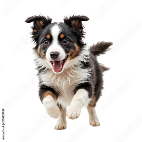 Miniature American Shepherd Puppy Running isolated on transparent background