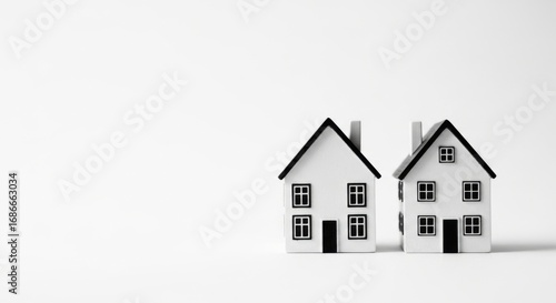Miniature Black and White House Models on White Background for Real Estate or Housing Concept