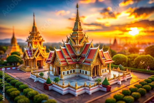 Miniature Buddhist Temple Wat Sao Thong Thong, Lopburi, Thailand - Tilt-Shift Photography