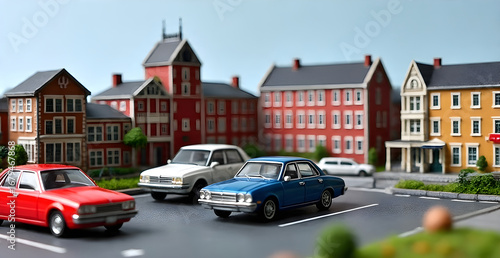 Miniature Cityscape with Cars and Buildings Creating a Quaint Urban Scene