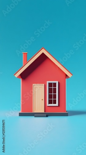 Miniature Cute Simple 3D Rendered House with Saturated Background