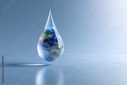 Miniature Earth Inside Water Drop with Soft Reflective Surface
