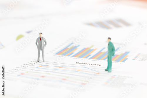 Miniature figures businessman standing on a graph chart